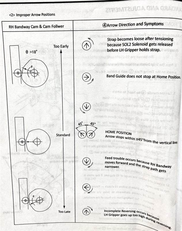 5.Turn the Main Switch on, and push the start switch to cycle the machine once. Confirm the arrow 4 points upwards (at 12 o'clock) and within the range of 45 degrees. If the arrow is out of this range,
